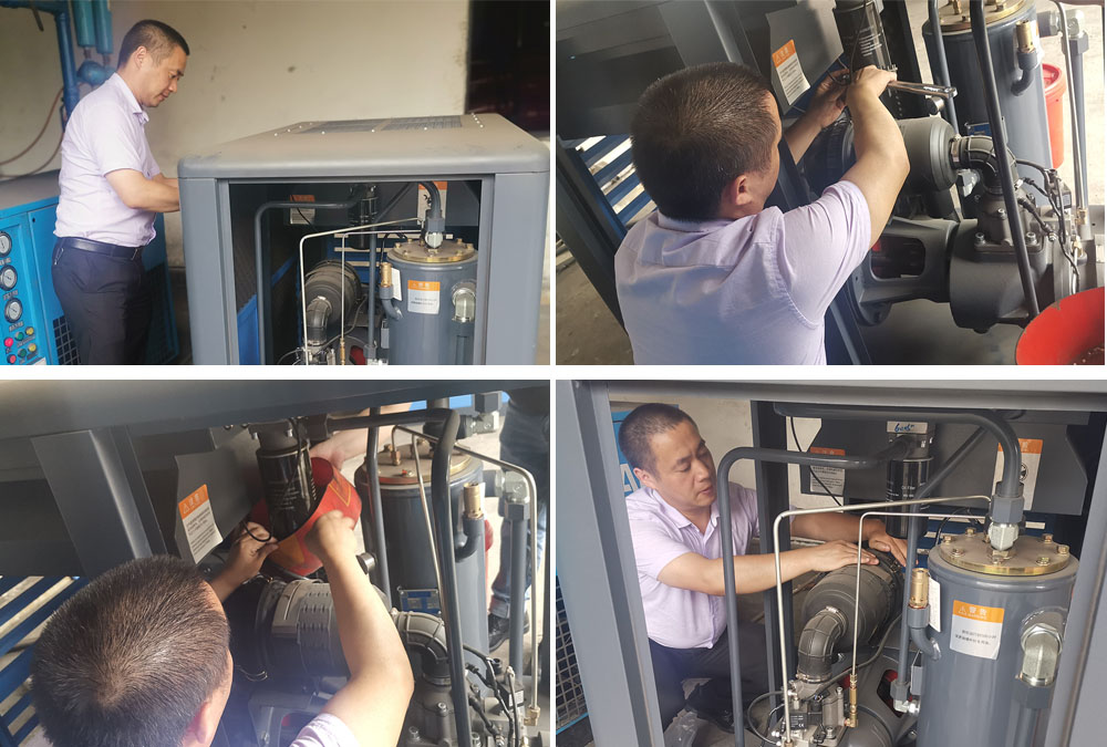 客户工厂主要容器加工,对空压机的要求比较高,本次保养空压机主要是22KW永磁变频空压机,该空压机节能,耗电低等多种优势。